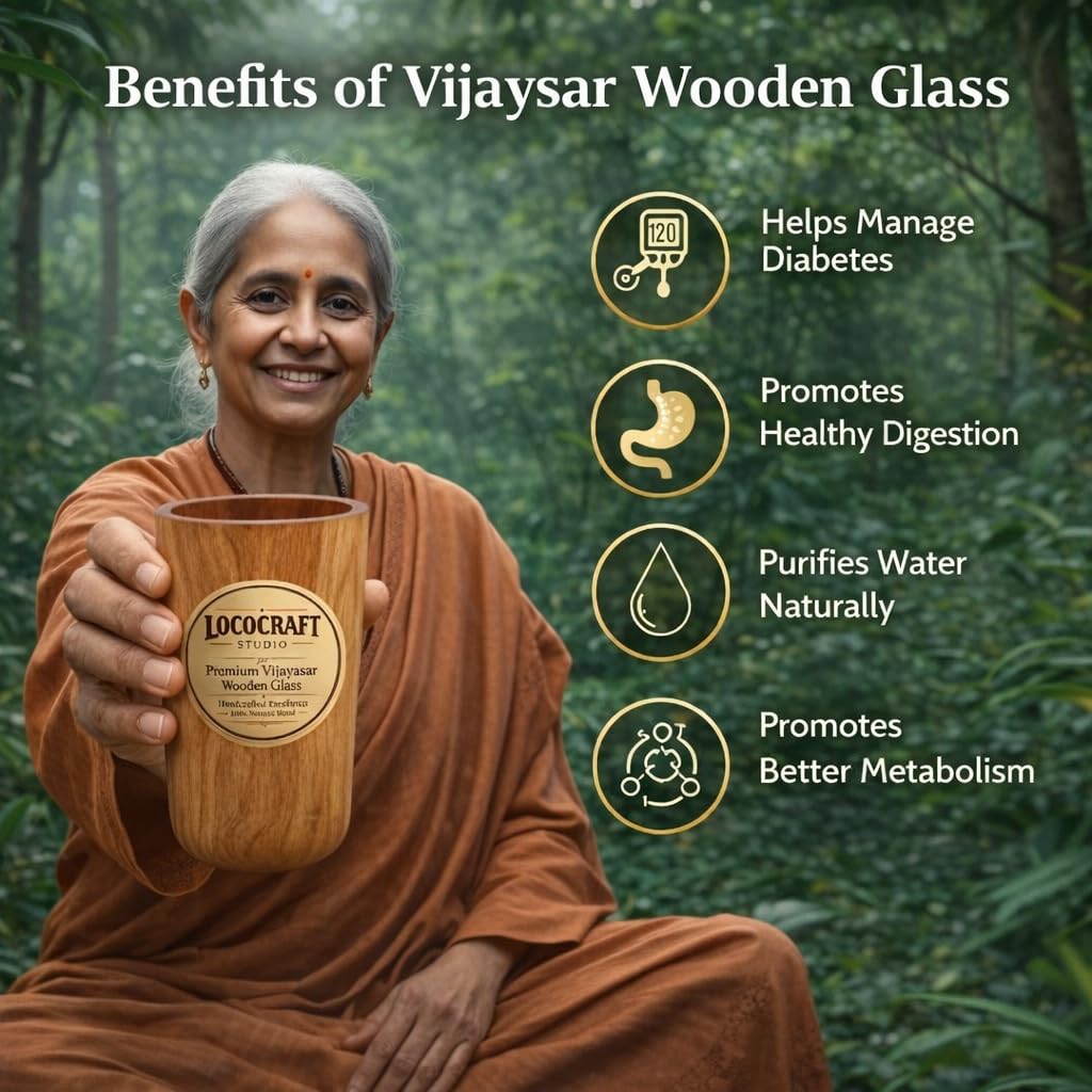 • Promotes liver detoxification and improves metabolism by infusing water with the natural benefits of Vijaysar wood. Ideal for daily herbal wellness routines.